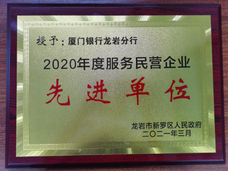 龍巖分行榮獲“2020年度新羅區(qū)服務(wù)民營(yíng)企業(yè)先進(jìn)單位”榮譽(yù)稱(chēng)號(hào)
