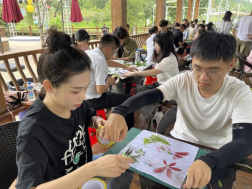 雙人手工DIY拓印活動(dòng)中,學(xué)員們收集了梅花山上散落的樹葉、花朵等,將汁液拓在帆布袋上,充分發(fā)揮想象力和創(chuàng)造力,創(chuàng)作出只屬于兩人的手工作品,增強(qiáng)了彼此間的合作默契,更加深了對彼此的了解。