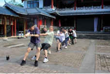 隨后,觀景臺(tái)廣場(chǎng)變身歡樂(lè)競(jìng)技場(chǎng)。員工們分成兩支隊(duì)伍展開(kāi)趣味拔河賽,賽場(chǎng)上繩索輕晃、口號(hào)輕快,員工們笑聲不斷,加油聲與山間清風(fēng)交織成曲。雖無(wú)激烈對(duì)抗,但雙方隊(duì)員齊心協(xié)力、寸步不讓的姿態(tài),將“友誼第一,比賽第二”的娛樂(lè)精神展現(xiàn)得淋漓盡致。