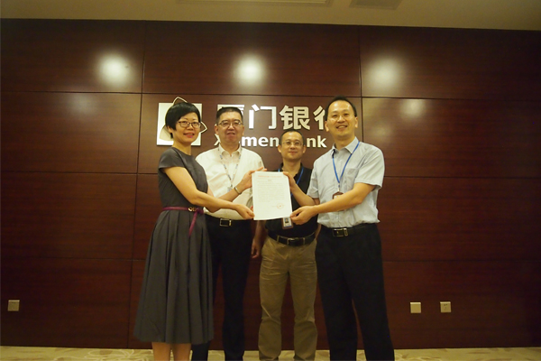 8月15日下午,廈門市稅務(wù)局收規(guī)處副處長陳向群,思明區(qū)稅務(wù)局副局長高燕槐及思明區(qū)稅務(wù)局收入核算科、辦公室一行5人到我行舉行助力“減稅降費”授旗儀式及送來感謝信。感謝我行對“減稅降費”工作的大力支持,感謝代理支庫行開元支行克服退稅量大,加班加點,為減稅降費政策落地生根,助力思明區(qū)經(jīng)濟發(fā)展做出了重大貢獻。我行總行副行長、廈門業(yè)務(wù)管理總部總監(jiān)劉永斌、管理總部副總監(jiān)林欽、營運管理部總經(jīng)理陳麗琨及開元支行行長黃鑫、國庫主辦林波、傅盈盈等人參加授旗儀式。