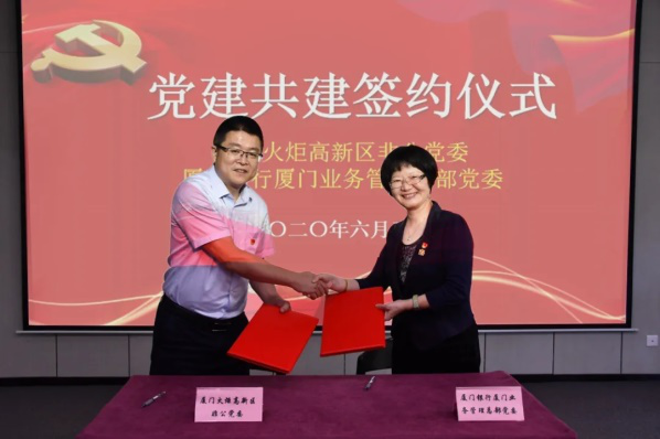 廈門(mén)銀行廈門(mén)業(yè)務(wù)管理總部黨委與廈門(mén)火炬高新區(qū)非公黨委舉行黨建共建簽約暨黨建卡交卡儀式