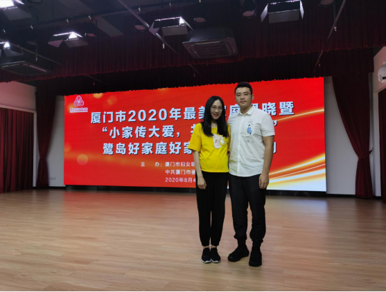2020年8月4日上午,由廈門市婦聯(lián)、中共廈門市委文明辦聯(lián)合舉辦的“2020年最美家庭揭曉”暨“小家傳大愛,共筑家國夢”鷺島好家庭好家風(fēng)宣講活動在巾幗大廈舉行。廈門五一支行黃妙玲家庭獲廈門市2020年最美家庭稱號,并到場參會。