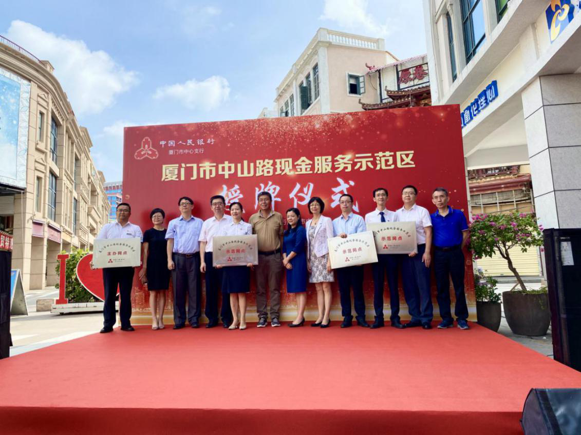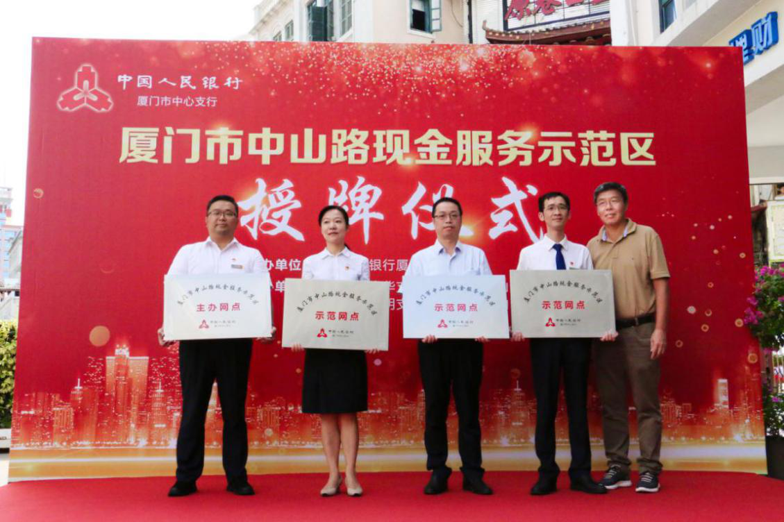9月15日,廈門市中山路現(xiàn)金服務(wù)示范區(qū)授牌儀式暨“人民幣知識宣傳進社區(qū)”宣傳活動在廈門銀行中華支行營業(yè)網(wǎng)點前舉辦。中國人民銀行廈門市中心支行副行長王琨、中國人民銀行廈門市中心支行貨幣金銀處處長黃毅、廈門市思明區(qū)中華街道黨工委書記陳澤昭、廈門銀行副行長劉永斌、廈門銀行廈門業(yè)務(wù)管理總部林欽副總監(jiān)出席本次活動,我行中華支行被授予“中山路現(xiàn)金服務(wù)示范區(qū)主辦網(wǎng)點”。