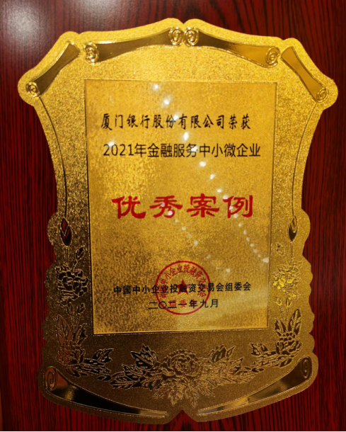 9月10日,第九屆中國(guó)中小企業(yè)投融資交易會(huì)暨2021“小企業(yè)大夢(mèng)想”高峰論壇在北京國(guó)家會(huì)議中心隆重舉行,大會(huì)發(fā)布了2021年金融服務(wù)中小微企業(yè)案例征集活動(dòng)入圍案例,廈門銀行《增信基金業(yè)務(wù):創(chuàng)新服務(wù)模式 踐行普惠金融》成功入圍并榮獲優(yōu)秀案例。本次活動(dòng)由國(guó)家發(fā)展和改革委員會(huì)批準(zhǔn),中國(guó)中小企業(yè)協(xié)會(huì)發(fā)起,聯(lián)合中國(guó)銀行業(yè)協(xié)會(huì)、中國(guó)期貨業(yè)協(xié)會(huì)等國(guó)家級(jí)行業(yè)協(xié)會(huì)共同舉辦,廈門業(yè)務(wù)管理總部黃煒杰副總監(jiān)代表我行應(yīng)邀參加領(lǐng)取獎(jiǎng)狀。