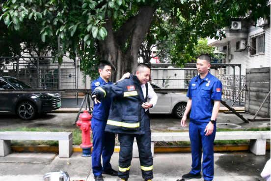 在江頭消防救援站內(nèi),消防戰(zhàn)士通過實(shí)地講解各類消防器材及防護(hù)工具,銀行職工們參觀了消防車輛器材裝備,認(rèn)真聆聽消防員介紹各類消防車及裝備器材的名稱、性能、用途及操作方法,職工們身臨其境感受消防車、穿上消防服,對(duì)消防有了更加深入直觀的了解,感受消防戰(zhàn)士的艱辛。