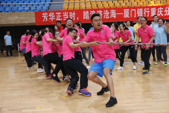 趣味運(yùn)動(dòng)會(huì)精心設(shè)置了“心手相連 龍飛鳳舞”、“齊心協(xié)力 夯實(shí)根基”、“財(cái)源滾滾”、“建功立業(yè) 擼袖實(shí)干”、“趣味多向拔河”五個(gè)項(xiàng)目。九支隊(duì)伍各自為陣,輪番上陣比拼,場(chǎng)外的觀眾也不甘示弱,都奮力為自己的隊(duì)伍加油助威,一時(shí)間,鼓勁兒聲、吶喊聲、歡笑聲匯聚成一片激情洋溢、熱血沸騰的海洋。在大家的積極參與和激烈爭(zhēng)奪下,由風(fēng)險(xiǎn)控制部和計(jì)劃財(cái)務(wù)部組成的“威震八方隊(duì)”奪得本次運(yùn)動(dòng)會(huì)的冠軍,“春風(fēng)隊(duì)”(新興金融部、渝北支行)、“一聚兩德隊(duì)”(兩江支行、零售業(yè)務(wù)一部)分列二、三位。行領(lǐng)導(dǎo)分別為本次獲獎(jiǎng)的隊(duì)伍辦法了獎(jiǎng)狀和獎(jiǎng)金。