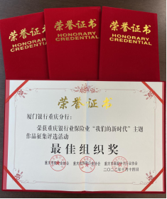 9-10月期間,廈門銀行重慶分行積極組織參與了重慶銀行業(yè)保險業(yè)“我們的新時代”主題作品征集評選活動,并在本次活動中榮獲集體“最佳組織獎”以及三個單項獎。