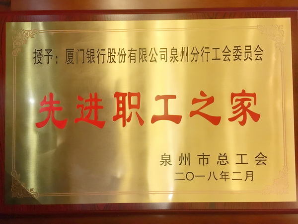 泉州分行被泉州市總工會授予“先進職工之家”榮譽稱號