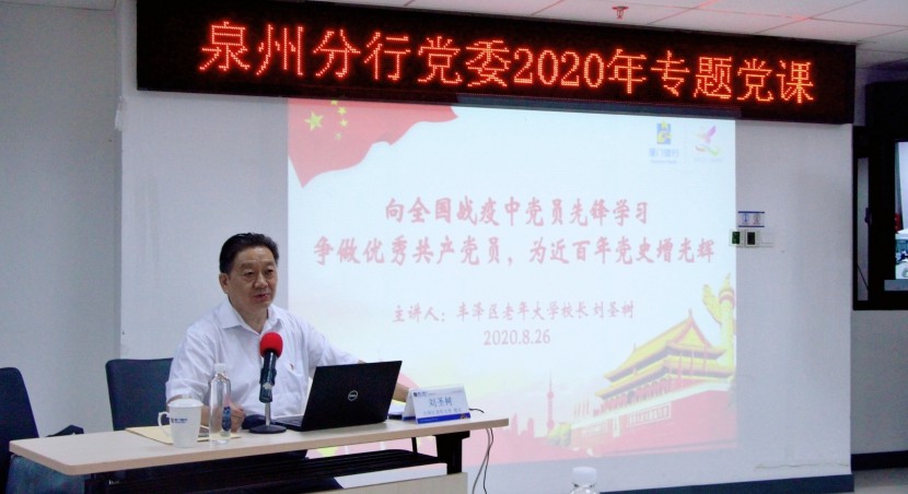 為進一步弘揚抗“疫”精神,學習優(yōu)秀黨員先鋒事跡,激發(fā)全體黨員以實際行動詮釋“不忘初心、牢記使命”,8月27日,廈門銀行泉州分行黨委邀請豐澤區(qū)老年大學劉圣樹校長,開展《向全國戰(zhàn)疫中黨員先鋒學習——爭做優(yōu)秀共產(chǎn)黨員,為近百年黨史增光輝》專題黨課。