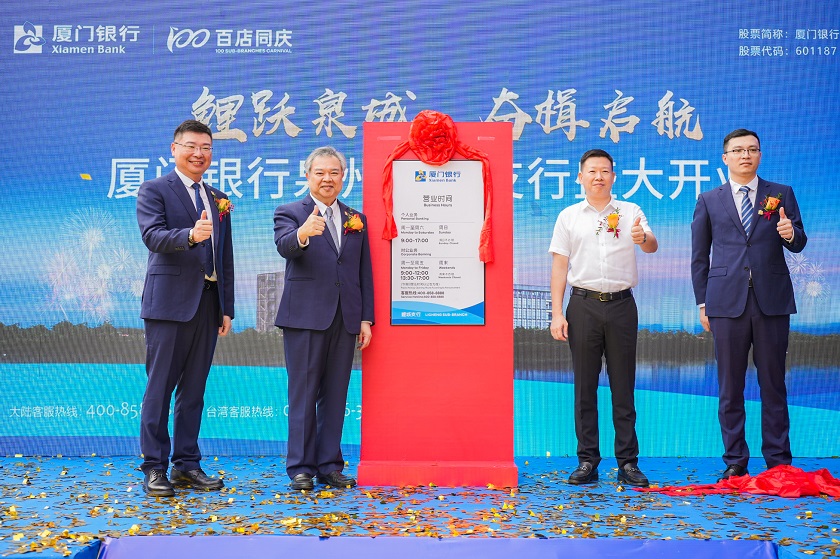 鯉城區(qū)委書記黃輝燦、廈門銀行行長吳昕顥、廈門銀行泉州分行行長洪堯文和廈門銀行泉州鯉城支行行長林鳴共同為支行開業(yè)揭牌。