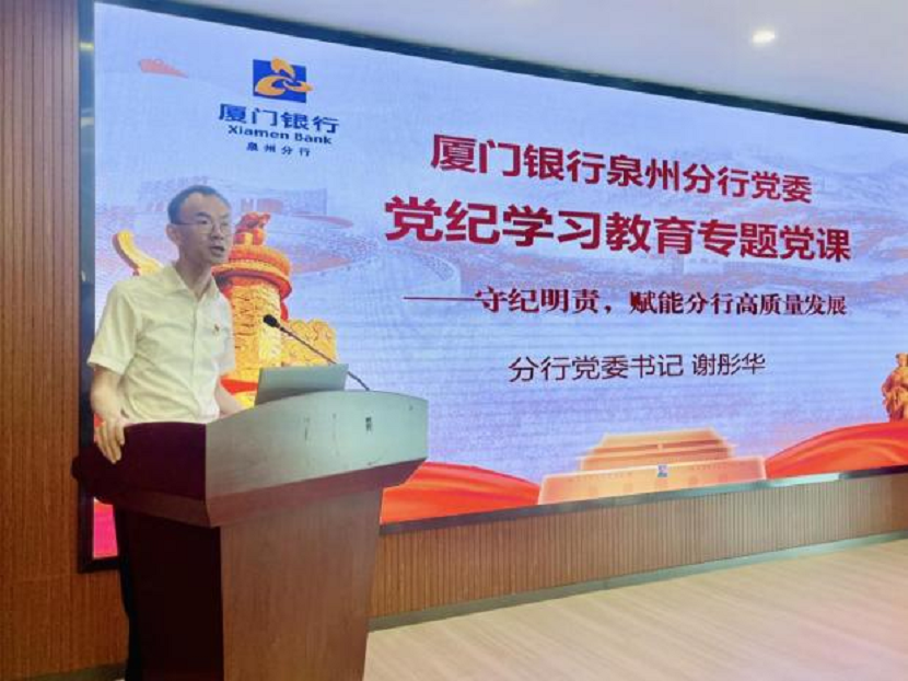 為加強(qiáng)廉政紀(jì)律教育,筑牢廉潔自律防線,7月11日,總行黨委委員、副行長(zhǎng)兼泉州分行黨委書記謝彤華以《守紀(jì)明責(zé),賦能分行高質(zhì)量發(fā)展》為主題,為分行全體黨員、2024年二季度新晉管理人員和新入職員工開展紀(jì)律專題黨課。