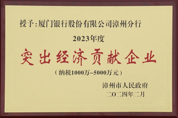 2月18日,漳州市人民政府決定對2023年度納稅1000萬元以上的441家企業(yè)授予“突出經(jīng)濟貢獻企業(yè)”榮譽稱號的表揚,廈門銀行漳州分行再次獲評2023年度“突出經(jīng)濟貢獻企業(yè)”,充分肯定了廈門銀行漳州分行為漳州經(jīng)濟社會發(fā)展作出的貢獻。