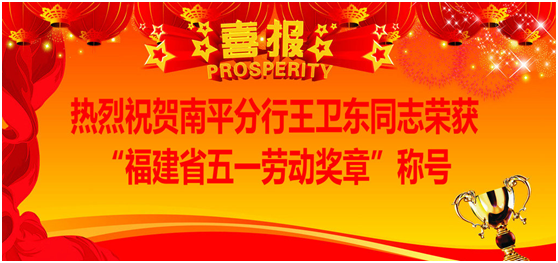 熱烈祝賀南平分行王衛(wèi)東同志榮獲“福建省五一勞動獎(jiǎng)?wù)隆狈Q號