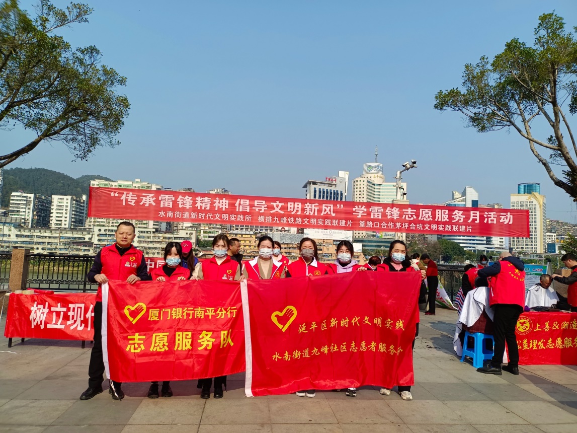 在全國(guó)第60個(gè)學(xué)雷鋒紀(jì)念日到來(lái)之際,為大力弘揚(yáng)雷鋒精神,踐行“奉獻(xiàn)、友愛(ài)、互助、進(jìn)步”的志愿精神。3月3日,廈門銀行南平分行、九峰社區(qū)、華夏眼科醫(yī)院等社區(qū)共建單位走上街頭,開展“傳承雷鋒精神、倡導(dǎo)文明新風(fēng)”學(xué)雷鋒志愿服務(wù)月活動(dòng)。在現(xiàn)場(chǎng)志愿者為社區(qū)居民提供金融咨詢服務(wù)、健康義診、免費(fèi)理發(fā)等志愿服務(wù)。
