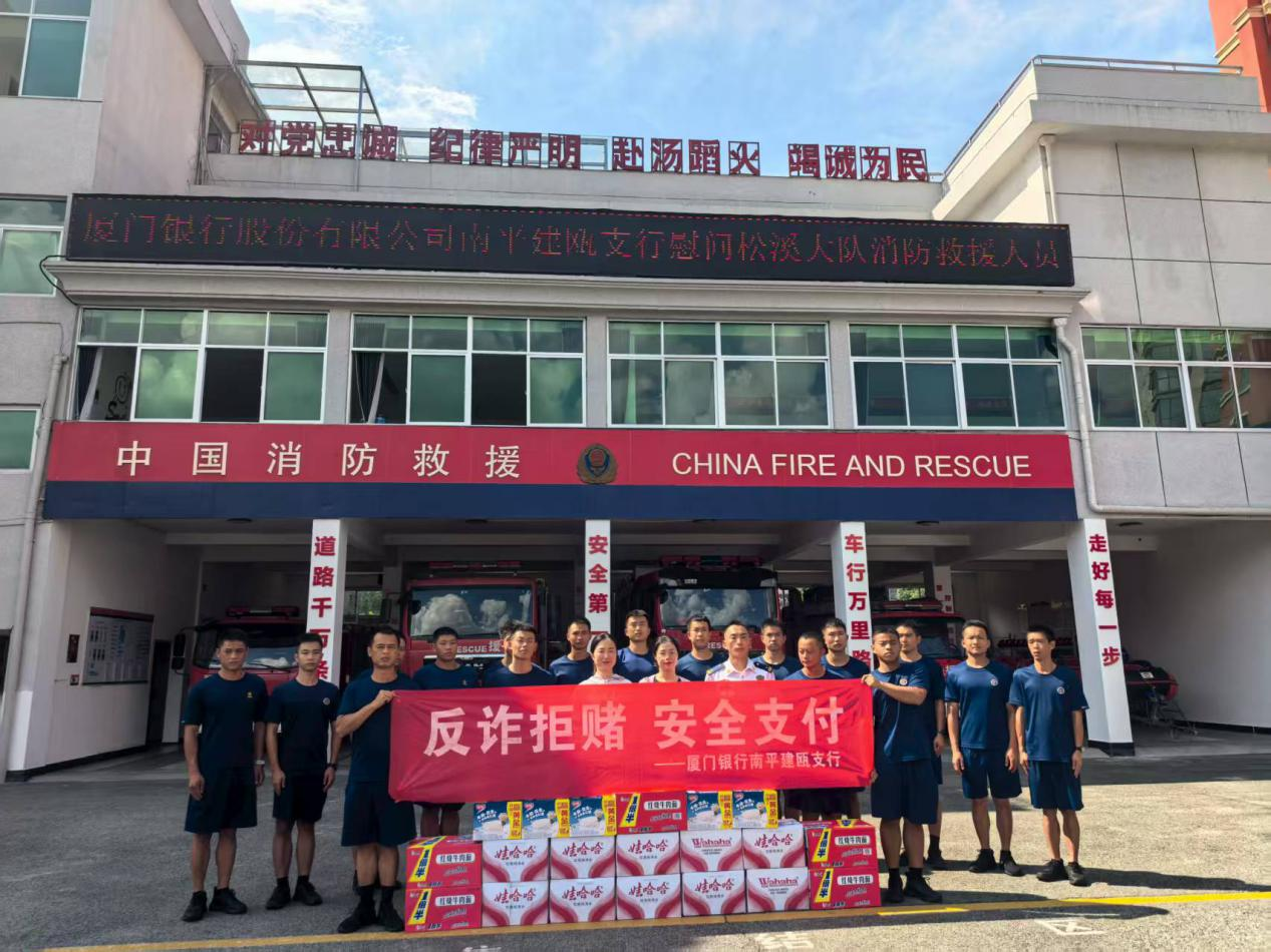 針對高溫下堅守一線的消防指戰(zhàn)員,支行向松溪、政和兩地消防救援大隊贈送礦泉水等防暑降溫物資,傳遞關懷與敬意。以此為契機,支行聯(lián)合這兩地消防救援大隊同步開展主題反詐宣傳,重點講解常見電信詐騙、非法集資的作案手法與識別技巧,強化消防員安全用卡意識,警示其切勿向陌生人泄露銀行卡信息。