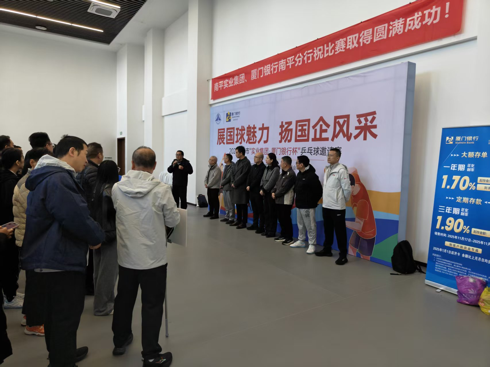 為深化銀企合作情誼,豐富職工文體生活,廈門銀行南平分行攜手南平實業(yè)集團有限公司共同舉辦2025南平市“實業(yè)集團.廈門銀行杯”乒乓球邀請賽,本次比賽以“展國球魅力 展國企風采”為主題,吸引了11支代表隊踴躍參與。