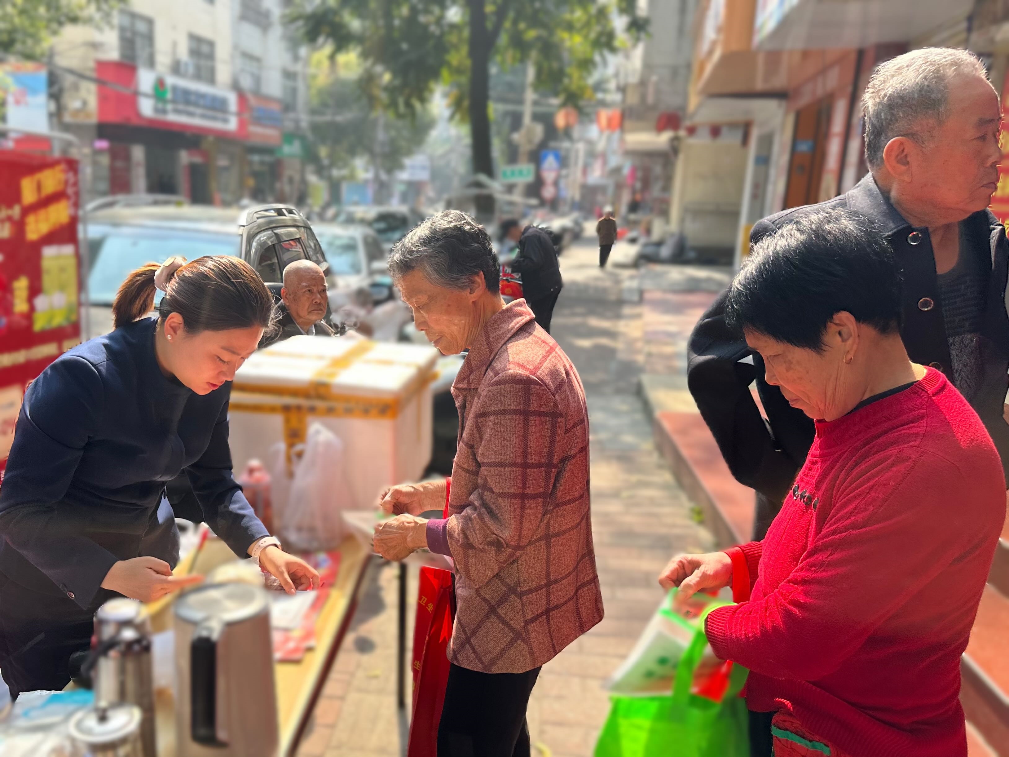 活動當(dāng)天,最受居民歡迎的莫過于“健康體檢送溫情”環(huán)節(jié)。支行聯(lián)合社區(qū)醫(yī)院為居民提供免費(fèi)血壓、血糖檢測和健康咨詢,考慮到許多老年居民早起排隊參與社區(qū)體檢,支行特別準(zhǔn)備了剛出爐的熱早餐。