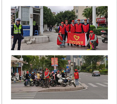 國泰路口是繁忙路段,交通復(fù)雜,車輛、行人流量大,志愿者們統(tǒng)一身穿紅色志愿服務(wù)馬甲,頭戴小紅帽,通過舉落小紅旗,勸導(dǎo)機(jī)動車及非機(jī)動車不要闖紅燈,引導(dǎo)行人走斑馬線,主動攙扶和幫助行動不便的老人過馬路,同時為過往群眾提供熱心幫助,贏得了廣大市民的好評和點(diǎn)贊,成為了街道路口的一道亮麗風(fēng)景線。