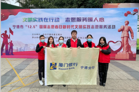 為響應(yīng)中共寧德市委文明辦舉辦的 “12.5”國際志愿者日活動(dòng),2020年12月4日,廈門銀行寧德分行成立由零售團(tuán)隊(duì)及蕉城支行組成的志愿者團(tuán)隊(duì)參加了在先鋒廣場舉辦的主題為“文明實(shí)踐在行動(dòng),志愿服務(wù)暖人心”的志愿者活動(dòng)。