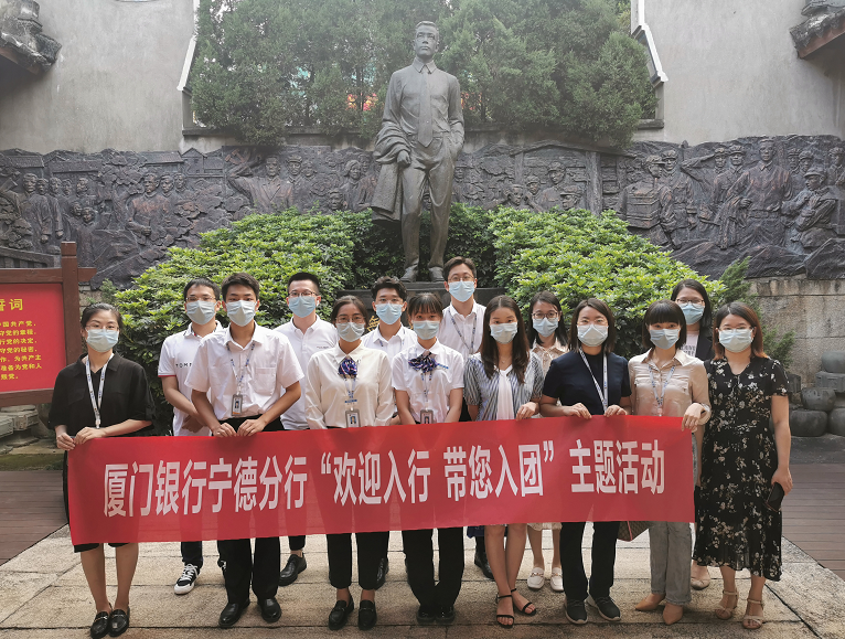 為持續(xù)推動黨史學(xué)習(xí)教育,緬懷革命先烈精神,也為幫助社招新員工及2021屆校招生更快融入團(tuán)隊,激發(fā)工作斗志,2021年8月27日,廈門銀行寧德分行組織部分黨員及團(tuán)員、新員工走進(jìn)愛國主義教育基地——蔡威紀(jì)念館開展“歡迎入行,帶您入團(tuán)”主題活動。
