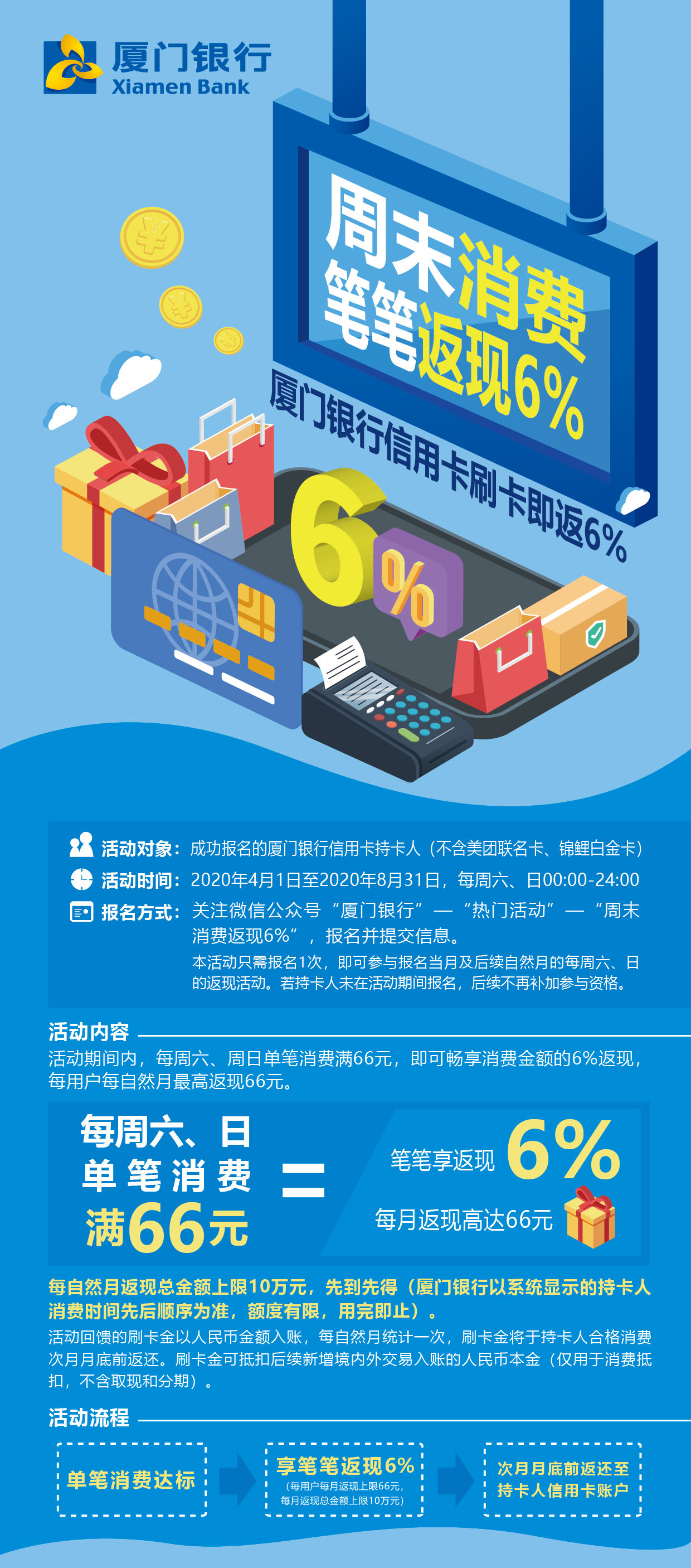 廈門銀行信用卡周末消費贏返現(xiàn)6%