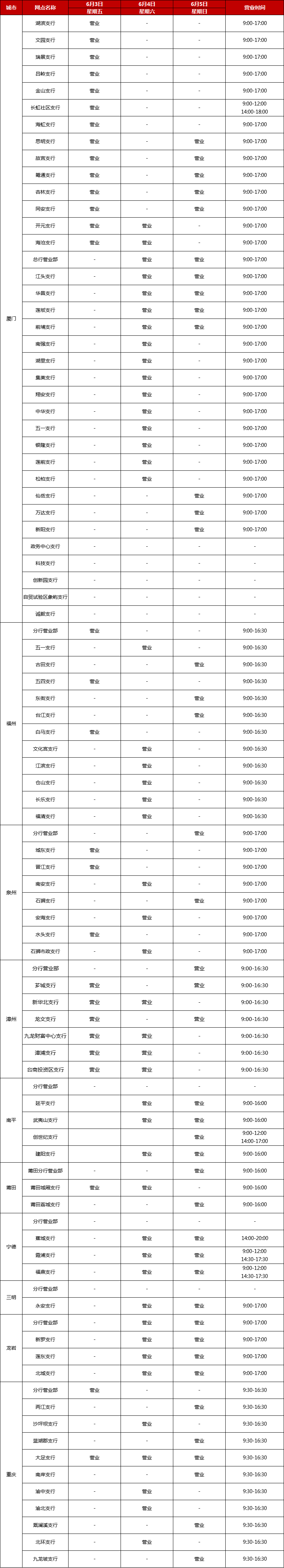 廈門銀行2022年端午節(jié)假期網(wǎng)點對外營業(yè)時間通告