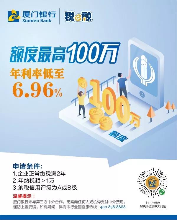 截至2019年9月末,“稅e融”已累計為3500余戶民營、小微企業(yè)提供超過18億元純信用授信支持,讓越來越多的誠信納稅小微企業(yè)享受到基于納稅信用的融資服務(wù)。可以說,“稅e融”的推出,是廈門銀行用實際行動支持實體經(jīng)濟的有力實踐。