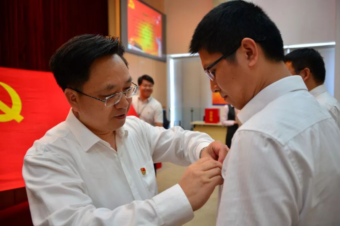 會上,黨委書記吳世群和黨委副書記張永歡為新入黨黨員佩戴黨徽,并帶領(lǐng)新黨員入黨宣誓及全體黨員代表重溫入黨誓詞。在黨的生日這一天站在黨旗下莊嚴(yán)宣誓,成為新老黨員們最神圣最重要的承諾,表達(dá)了黨員同志矢志踐行入黨初心的決心。