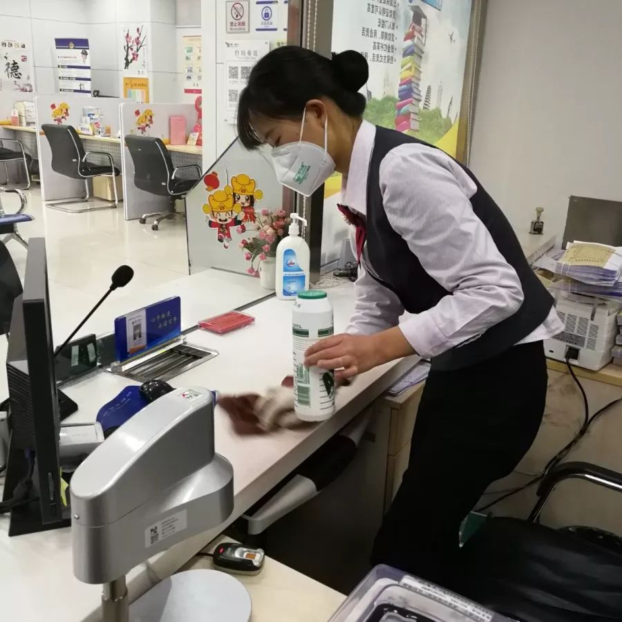 提高營(yíng)業(yè)網(wǎng)點(diǎn)和自助設(shè)備衛(wèi)生消毒頻次,做好現(xiàn)金消毒管理。同時(shí),為工作人員配備口罩和消毒用品等防護(hù)用品,持續(xù)做好營(yíng)業(yè)網(wǎng)點(diǎn)環(huán)境衛(wèi)生管理,保障員工自身和客戶健康。