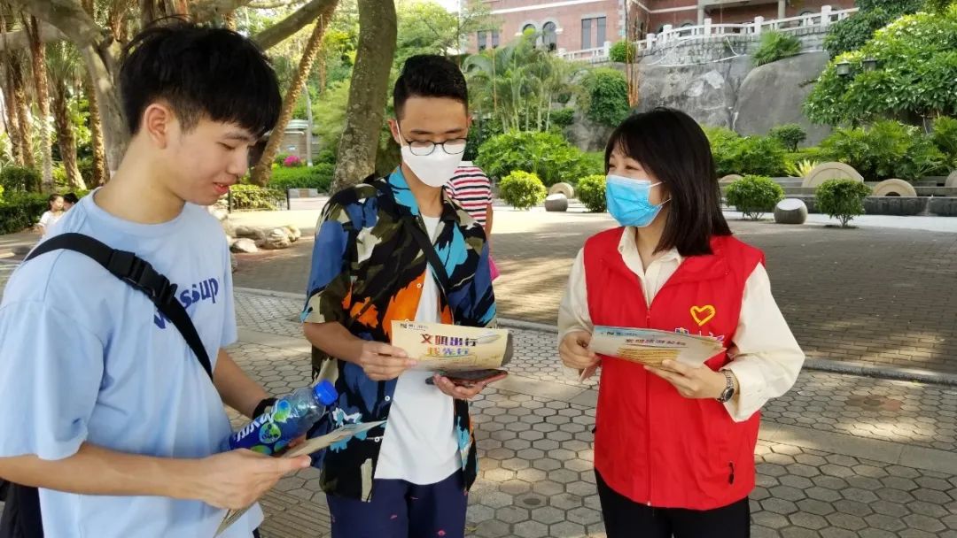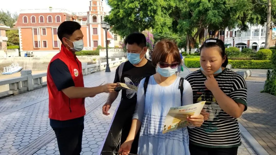 2020年7月14日,由廈門銀行臺(tái)籍員工志愿者組成的廈門兩岸金融聯(lián)合志愿服務(wù)隊(duì)來到了鼓浪嶼風(fēng)景名勝區(qū)進(jìn)行文明旅游宣導(dǎo),引導(dǎo)來廈旅游的游客文明旅游、文明觀光,嚴(yán)守疫情防控舉措。志愿者們不畏辛勞,頂著炎炎烈日,向往來游客發(fā)放及宣傳“文明旅游公約”,同時(shí)對不文明的行為進(jìn)行勸導(dǎo)。