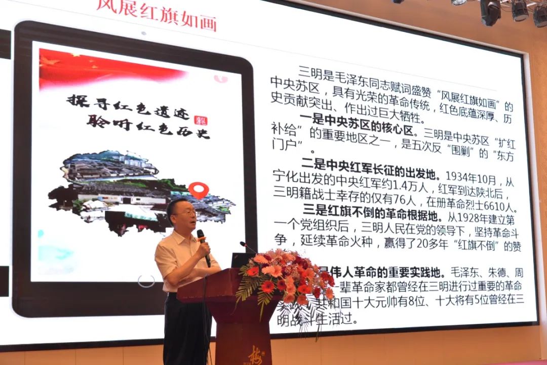 從城市概況到“風(fēng)展紅旗如畫“的革命歷史,再到堅定貫徹習(xí)近平總書記“綠水青山”的發(fā)展戰(zhàn)略;福建省重要的老工業(yè)基地、紅軍長征出發(fā)地之一、全國群眾性精神文明創(chuàng)建活動發(fā)祥地;生態(tài)優(yōu)美城市、宜居宜業(yè)城市、包容開放城市……袁行長帶團(tuán)員青年們?nèi)妗⒓?xì)致地領(lǐng)略了三明地區(qū)的革命史和發(fā)展史。一段段閃耀的革命史讓團(tuán)員青年們回憶初心堅定跟黨走,一張張閃亮的城市名片讓團(tuán)員青年們更加堅定不懈奮斗的決心。