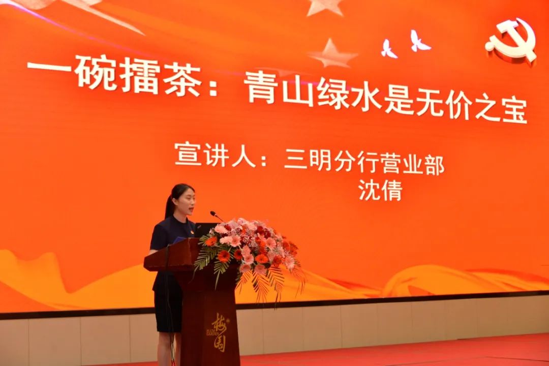 一碗擂茶、一條鯉魚、一杯米酒、一段歌聲、一個傳說,三明分行的團(tuán)員青年聲情并茂地為大家講述了“五個一”小故事,帶大家在小故事中領(lǐng)略習(xí)總書記與三明地區(qū)人民魚水情深共謀發(fā)展的往事,從小故事感悟習(xí)近平新時代中國特色社會主義思想,進(jìn)一步增強(qiáng)了堅定不移跟黨奮進(jìn)新時代的信念。