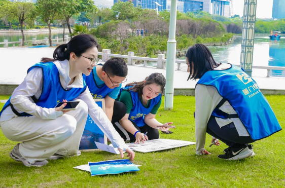 本次筼筜湖畔趣味生態(tài)跑圍繞筼筜湖畔設(shè)置關(guān)卡,通過手速拼圖、團隊打卡、尋寶答題等趣味環(huán)節(jié),關(guān)聯(lián)生態(tài)實踐與綠色知識普及。通過團隊的通力協(xié)作,進一步加深總分機構(gòu)團干之間的交流和互動,展現(xiàn)團干們的青春活力。