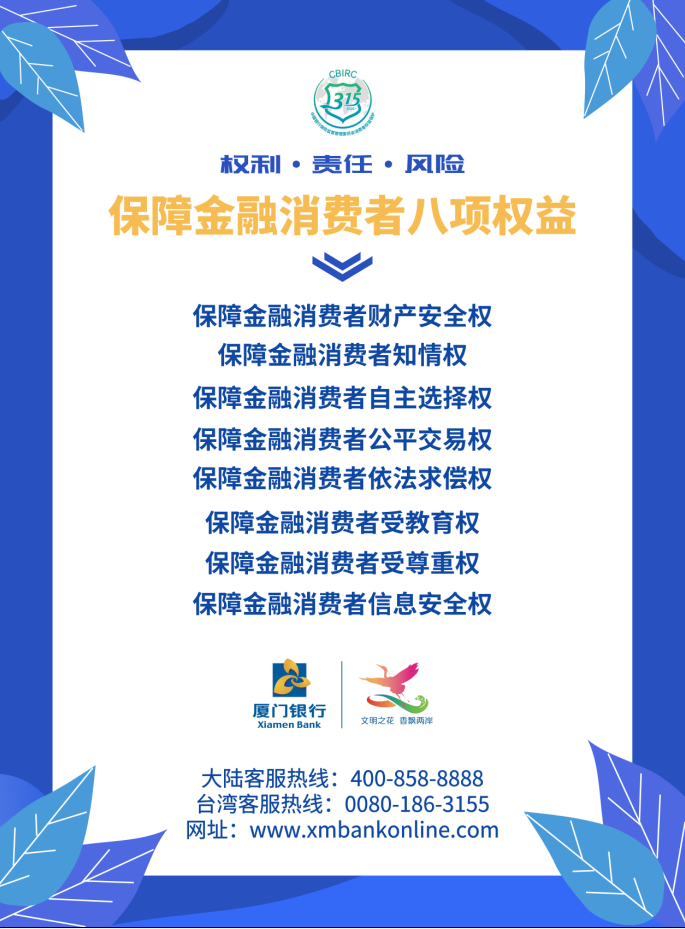 2020年“3.15金融消費(fèi)者權(quán)益保護(hù)”集中宣傳周--金融消費(fèi)者八項(xiàng)權(quán)益 日期:2020-03-11 11:25:23 上一篇 返回 下一篇