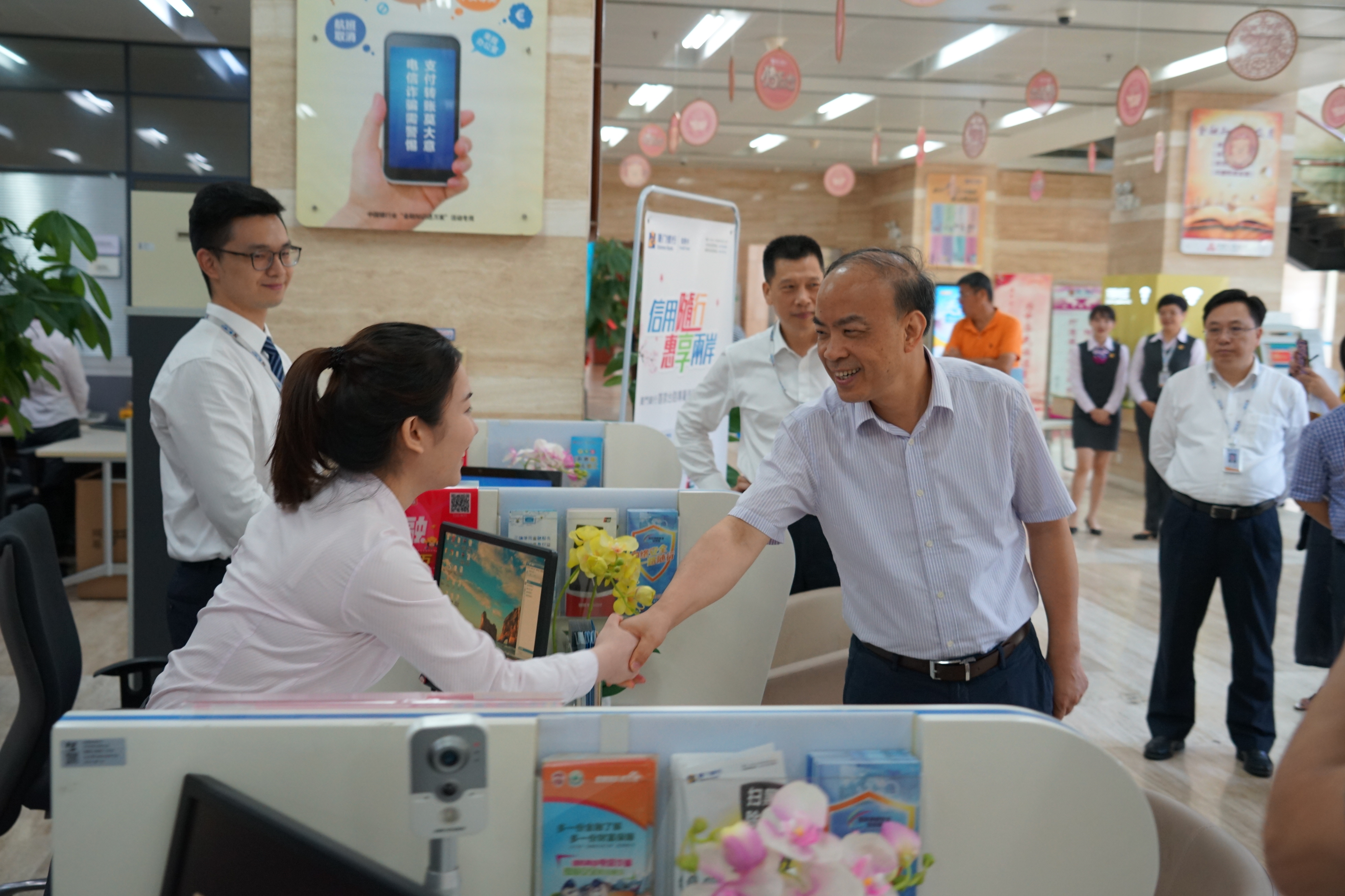 在臺胞信用卡辦理柜臺,黃副市長聽取了廈門銀行兩岸業(yè)務(wù)開展情況的匯報,并與臺籍員工拉起了家常,關(guān)心他們在大陸的生活起居,鼓勵他們好好工作,一起為兩岸合作而努力。