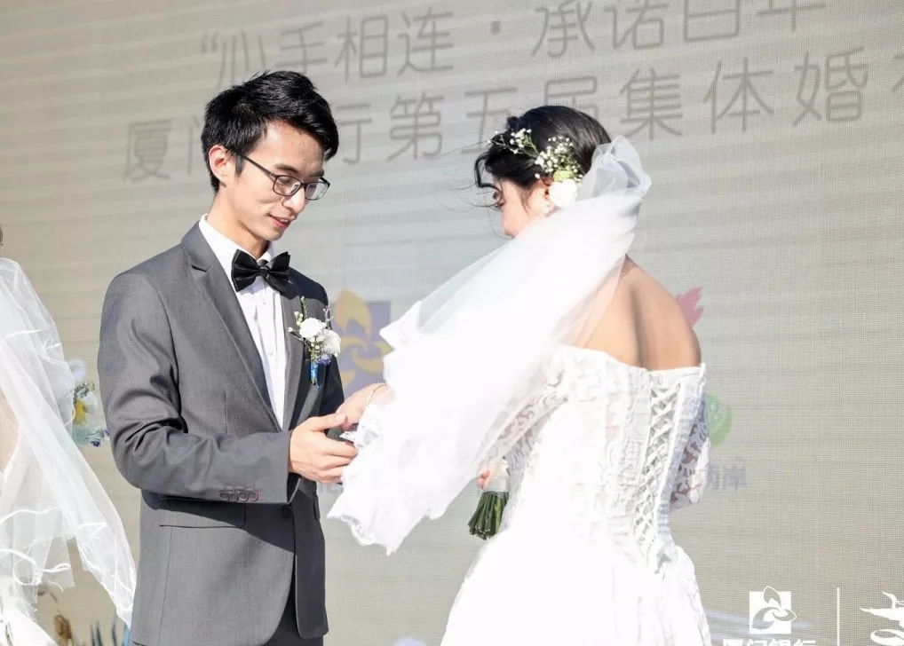2019年11月2日,在風(fēng)景如畫(huà)的白鷺洲,在古色古香的筼筜書(shū)院前,參加廈門(mén)銀行第五屆集體婚禮的21對(duì)甜蜜新人相聚在此,迎著金色的海浪,向著幸福的未來(lái)?yè)P(yáng)帆啟航。