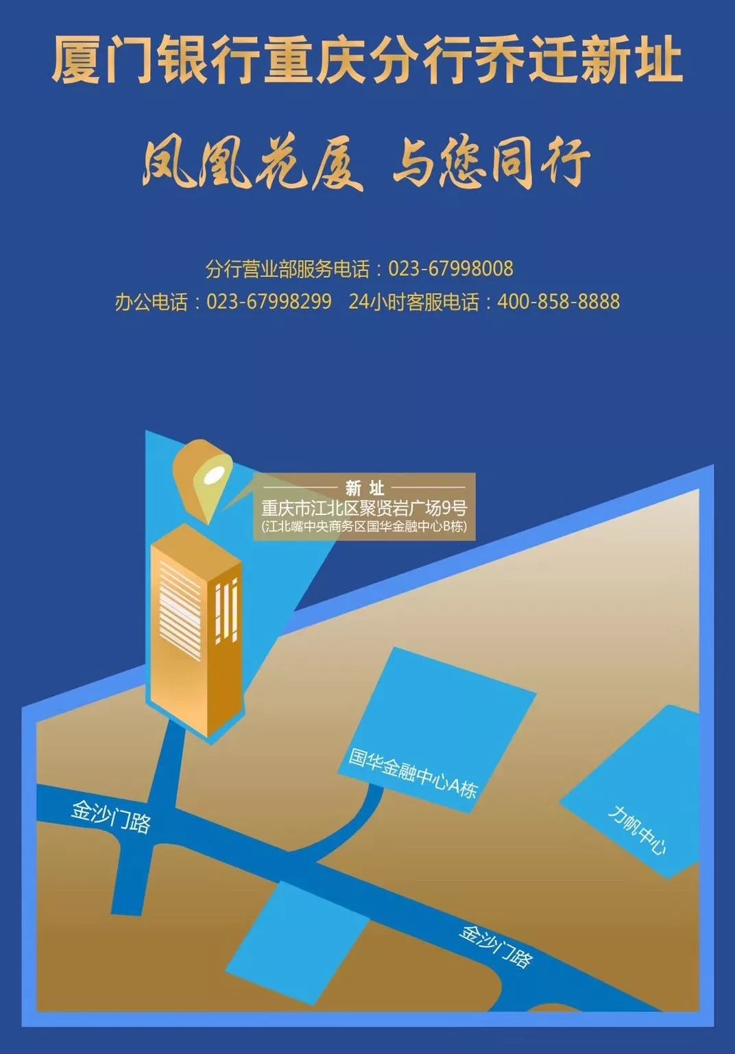 喬遷新址,立足未來。廈門銀行重慶分行將站在新的起點上,不忘“立足地方經(jīng)濟、支持中小企業(yè)、面向城市居民、服務(wù)兩岸臺商”的初心,繼續(xù)以昂揚的姿態(tài)積極服務(wù)實體經(jīng)濟、服務(wù)人民生活,為重慶的建設(shè)發(fā)展添磚加瓦。