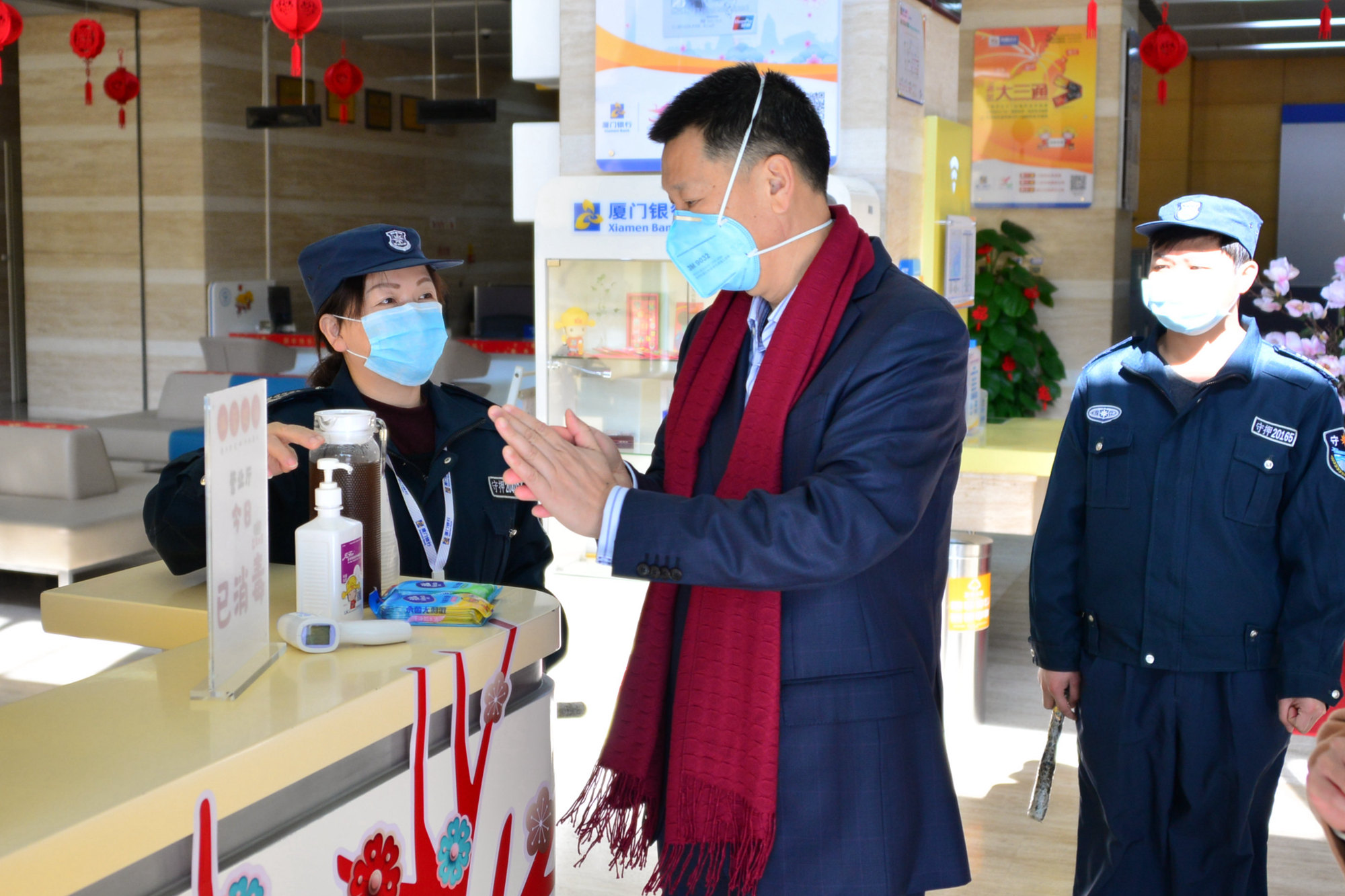 戴好口罩,測(cè)量體溫、消毒手部。在做好各項(xiàng)防疫措施后,吳世群董事長(zhǎng)走進(jìn)了總行營(yíng)業(yè)部,看到營(yíng)業(yè)廳內(nèi)的配置齊全的防控用品以及“已消毒”的提示后表示,營(yíng)業(yè)網(wǎng)點(diǎn)人流量大,務(wù)必做好設(shè)施消毒、廳堂通風(fēng)等網(wǎng)點(diǎn)衛(wèi)生管理工作。吳董事長(zhǎng)指示,要將各項(xiàng)防控工作責(zé)任落實(shí)到人,抓好防疫細(xì)節(jié),為員工與客戶筑起一道安全防線。同時(shí),要強(qiáng)化金融機(jī)構(gòu)的責(zé)任擔(dān)當(dāng),及時(shí)收集受疫情影響的企業(yè)信息,并安排人員逐一告知企業(yè)我行的應(yīng)對(duì)政策,以優(yōu)質(zhì)快捷高效的金融服務(wù)全力支持受疫情影響的小微企業(yè)走出困境,恢復(fù)正常的生產(chǎn)經(jīng)營(yíng)。