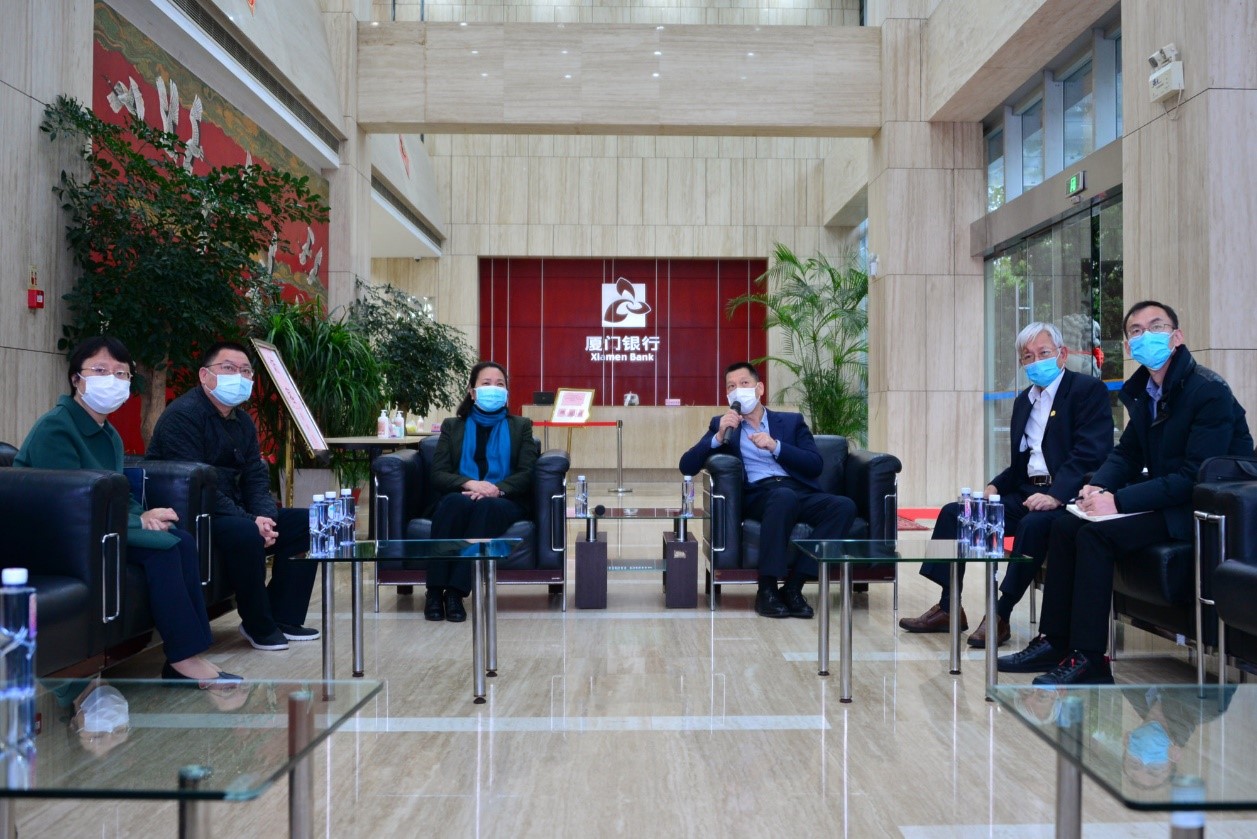 2020年3月4日,福建省臺(tái)港澳辦主任王玲一行蒞臨廈門(mén)銀行,對(duì)我行受疫情影響期間的生產(chǎn)經(jīng)營(yíng)情況,以及復(fù)工復(fù)產(chǎn)面臨的困難等進(jìn)行調(diào)研。廈門(mén)市臺(tái)港澳辦主任劉金柱,以及福建省臺(tái)港澳辦有關(guān)處室領(lǐng)導(dǎo),思明區(qū)委統(tǒng)戰(zhàn)部、思明區(qū)臺(tái)辦有關(guān)領(lǐng)導(dǎo)隨同調(diào)研。