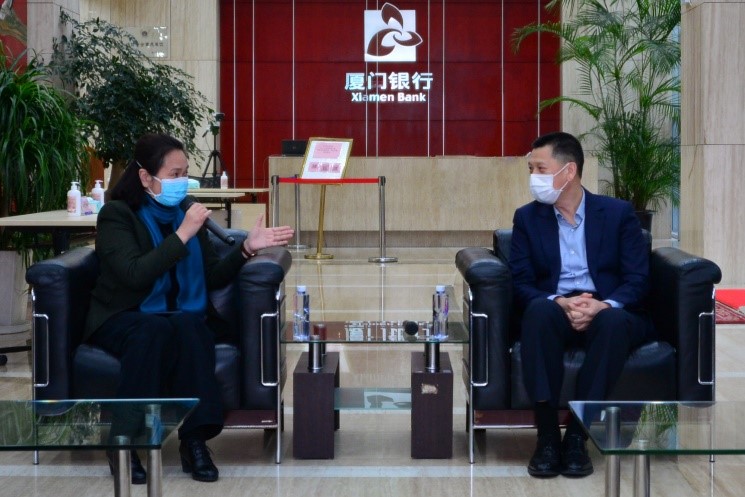 王主任還特別關(guān)注了臺(tái)胞臺(tái)企受疫情影響的情況。在了解到我行通過(guò)專(zhuān)門(mén)為臺(tái)胞臺(tái)企客戶(hù)提供的線(xiàn)上服務(wù)、臺(tái)商綠色通道等措施后,她表示,廈門(mén)銀行能與臺(tái)胞臺(tái)企、中小企業(yè)共渡疫情難關(guān),堅(jiān)持做好金融服務(wù)的行動(dòng)予以肯定,切實(shí)做到了不忘初心、不改本色,充分發(fā)揮了對(duì)臺(tái)特色。