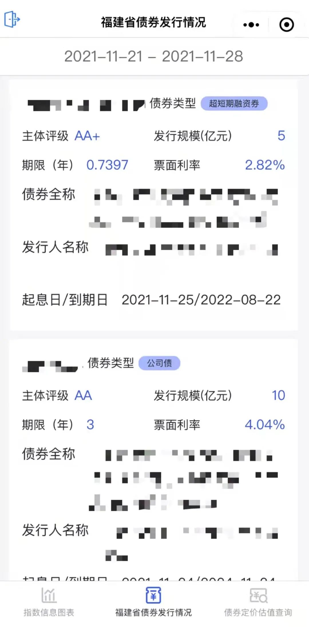 提供福建省內(nèi)企業(yè)債券發(fā)行的基本信息,及時(shí)看到省內(nèi)企業(yè)發(fā)債圈的動態(tài)。
