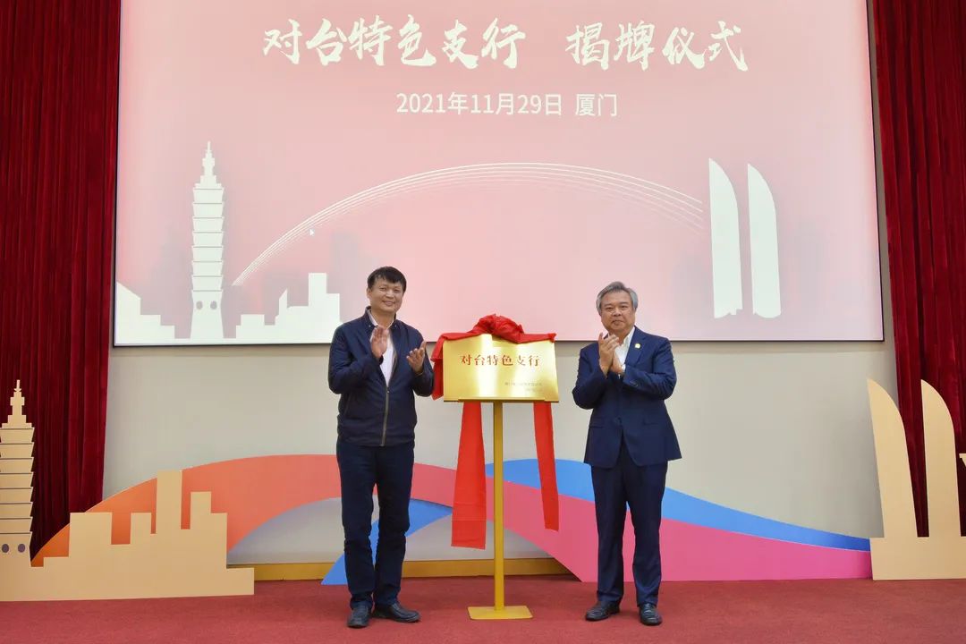 11月29日,廈門銀行舉行“對臺特色支行”授牌儀式,來自廈門、福州、重慶、泉州、漳州等五地的20家支行成為“對臺特色支行”。