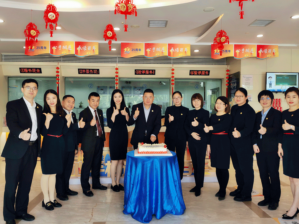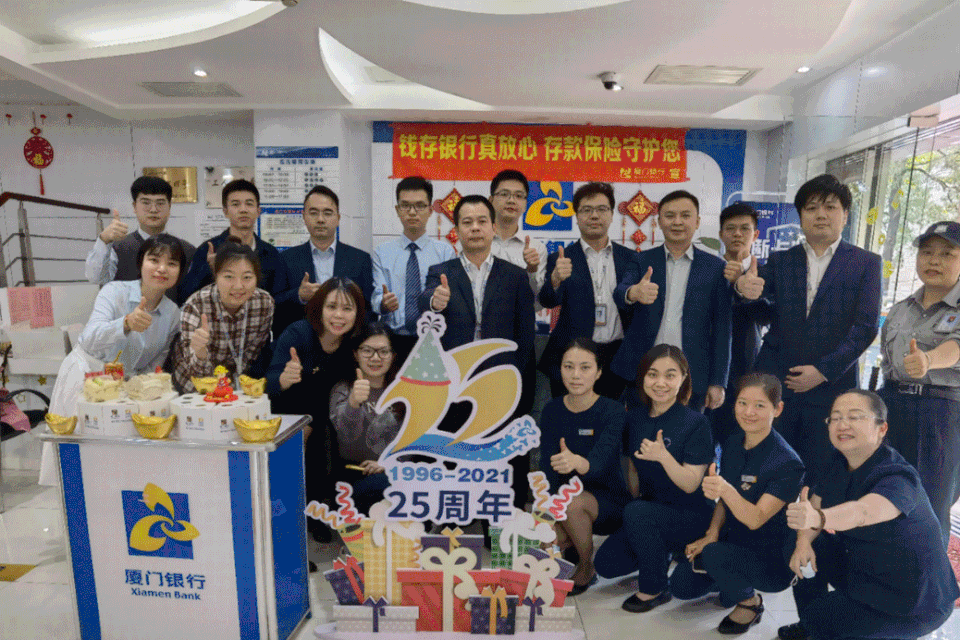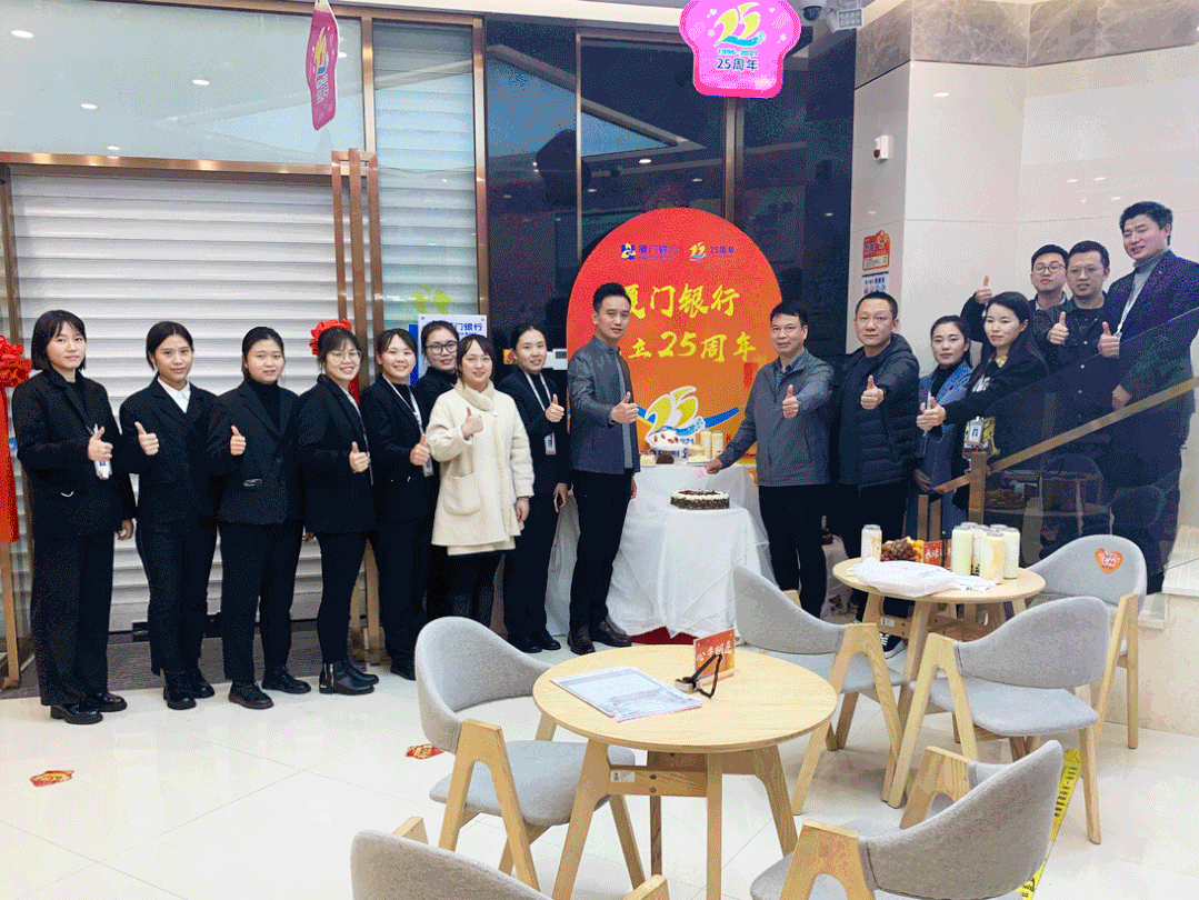 三明地區(qū)各網(wǎng)點(diǎn)為慶祝廈門銀行25周歲生日,不僅將營(yíng)業(yè)廳布置的氛圍濃厚,分行領(lǐng)導(dǎo)還和大家一起切蛋糕、送祝福,讓喜悅和甜蜜在每個(gè)人心中傳遞。
