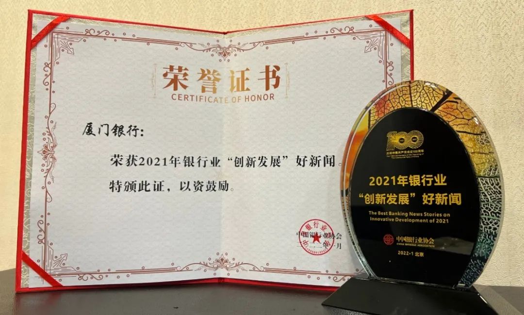 廈門銀行榮獲2021年中國銀行業(yè)“創(chuàng)新發(fā)展”好新聞