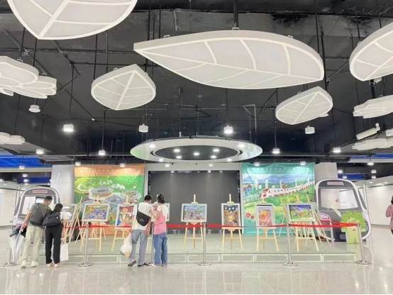 廈門銀行本次還與福州地鐵合作策劃推出了特展。特展與大展同日啟幕,精選本屆大展中的十余幅作品,在福州地鐵南門兜站中庭展出,以童畫裝點(diǎn)市民朋友的出行之旅。本是匆匆趕車的人們紛紛放慢腳步,跟隨孩子們的畫筆,一探不同“家”的特色。