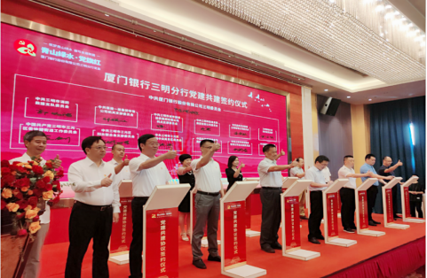 在總行黨委創(chuàng)建“金融夢(mèng) 奮斗者”黨建品牌引領(lǐng)下,2022年7月22日,廈門銀行三明分行黨委舉辦黨建品牌發(fā)布暨共建簽約儀式,正式發(fā)布廈門銀行三明分行“青山綠水·黨旗紅”黨建子品牌。三明學(xué)院、三明市消防救援支隊(duì)、三明市三元區(qū)委徐碧街道黨工委、福建一建集團(tuán)等12家共建單位代表蒞臨現(xiàn)場(chǎng)參加活動(dòng)。