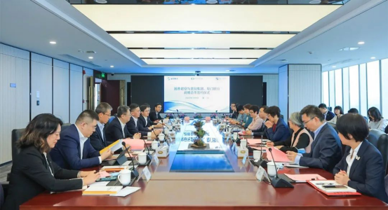 國(guó)泰君安副總裁李俊杰與金圓集團(tuán)黨委委員、副總經(jīng)理薛荷代表雙方簽署戰(zhàn)略合作協(xié)議。