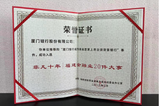 “廈門銀行成為福建省首家上市臺資背景銀行”成功入選“非凡十年—福建金融業(yè)20件大事”