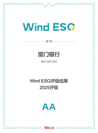 廈門銀行Wind ESG評(píng)級(jí)躍升至AA級(jí)