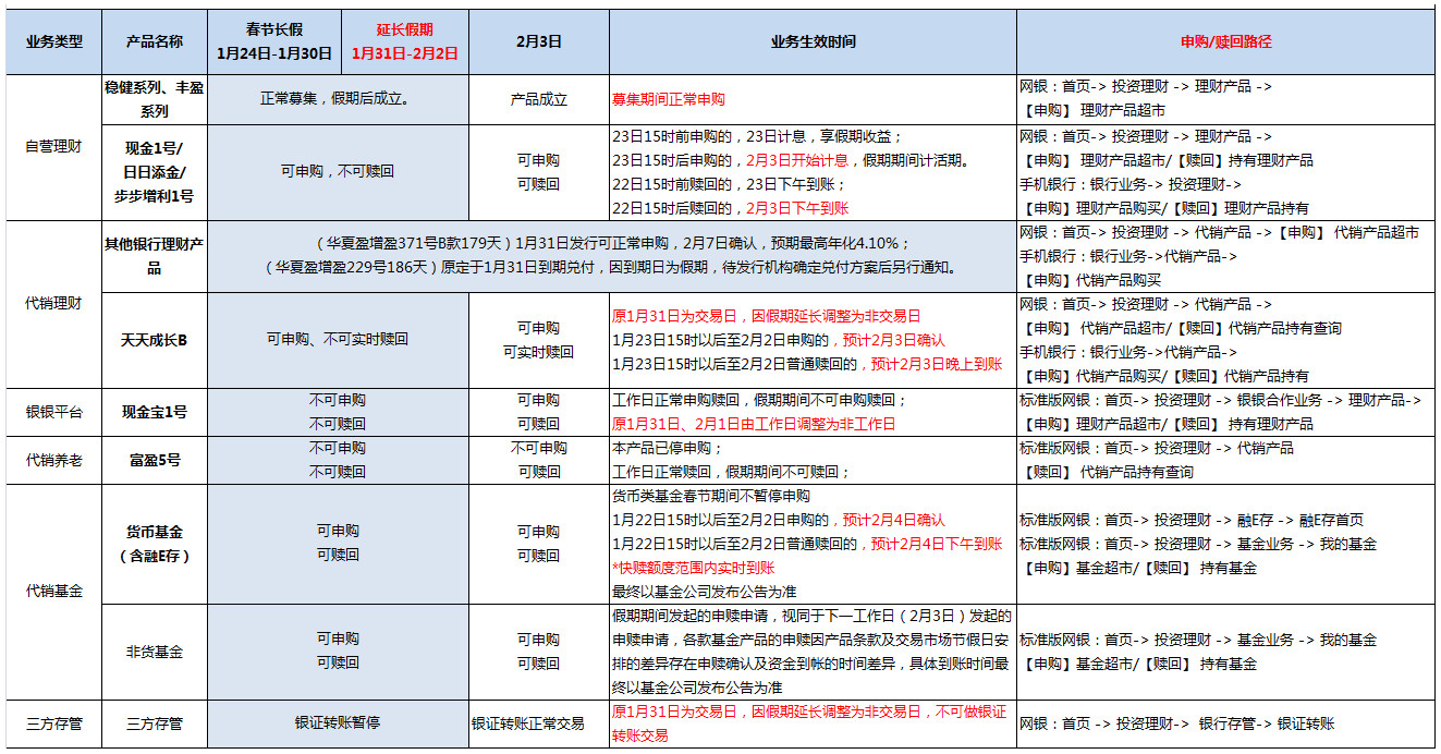 4. 財富管理業(yè)務(wù):大部分財富管理產(chǎn)品查詢、申購、認(rèn)購、贖回均可在手機銀行、廈e站、網(wǎng)上銀行處理,如果無法操作,建議先通過客服熱線或客戶經(jīng)理確認(rèn)后,如必須到銀行柜臺再行前往。*非常時期,部分新成立產(chǎn)品時間和到期產(chǎn)品到賬時間有變更,請以我行公告為準(zhǔn)。